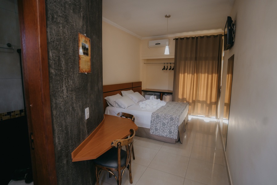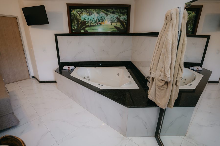 Uma excelente opção para quem procura romantismo na sua hospedagem em Brumadinho – MG. O Estrada Real Palace Hotel dispõe de cinco (5) Suítes Master, que oferecem uma vista maravilhosa para as serras e belo panorama das áreas de lazer do hotel. Mas, sem dúvidas, o diferencial desta categoria de hospedagem fica a cargo da relaxante banheira de hidromassagem. Perfeita para você recuperar as energias após um dia repleto de atividades.